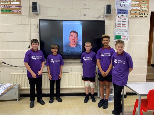 Wales and British Lions player Adam Beard, a former Birchgrove pupil, sends a video message congratulating current pupils on winning £1k for Cefn Coed Hospital