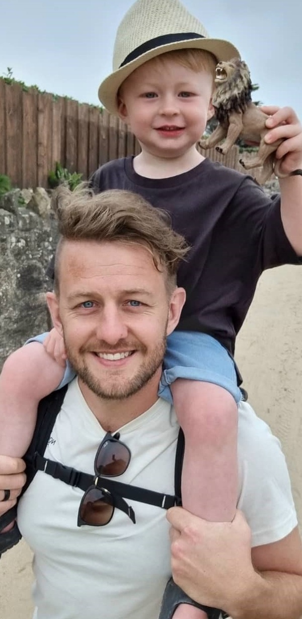 Physiotherapy technical instructor Shaun Suller with son Finley, who inspired him to write a children's book