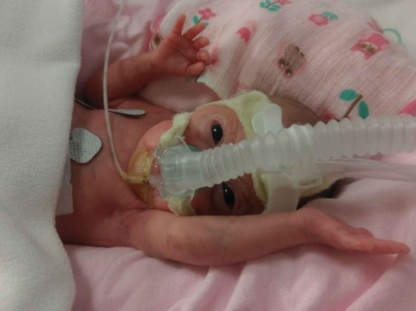 Olivia Edwards on a CPAP machine